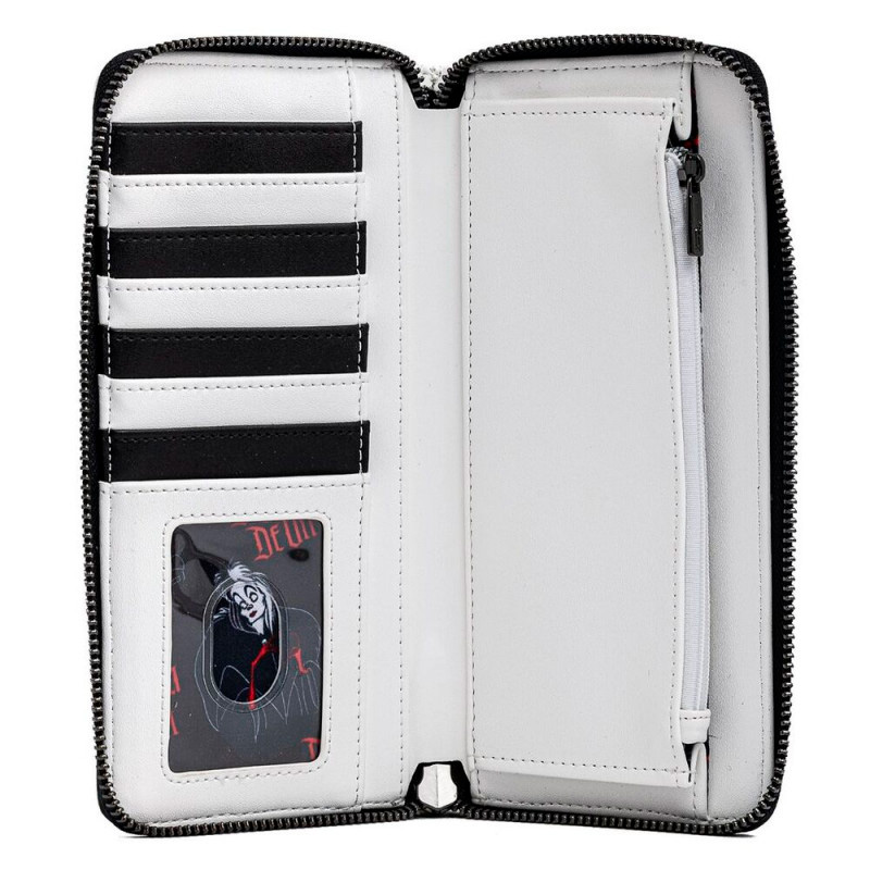 Alucinante y original cartera monedero, elegante y compacta, de la colección Disney con un diseño increíble: Cruella de Vil, de la película 101 Dalmatas, la villana más diva la factoría Disney.