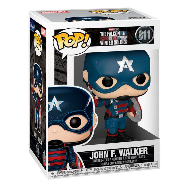 Funko Pop nos ofrece una edición numerada de sus protagonistas, John F Walker el personaje de Marvel es el N811 de la colección Pop. Un Funko Pop que consigue recrear con todo detalle la personalidad del personaje John F walker, con su uniforme de Soldado de Invierno. Pop lo recrea de pie, vestido con el uniforme azul y granate de soldado, su casco antifaz azul y el súper escudo en la mano.