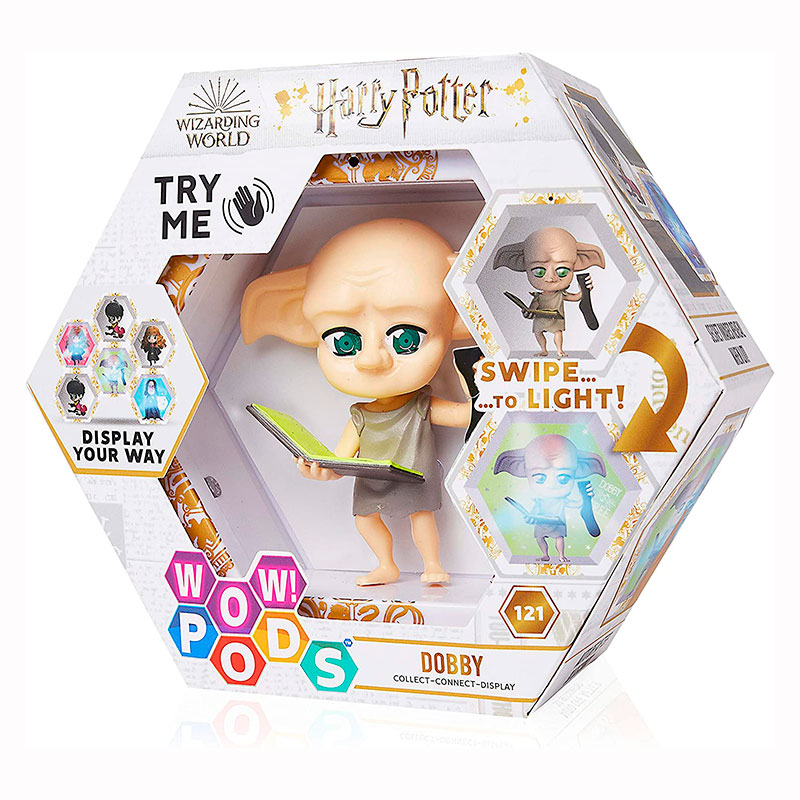 Aquí tienes la figura Pods de Dobby, personaje de la saga de Harry Potter, con su libro y mítico calcetín en la mano.