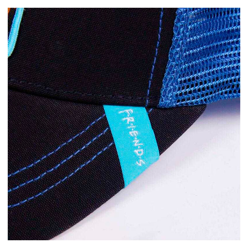 Su diseño Premium es súper chulo: la parte delantera está confeccionada en algodón de color azul marino, con un parche de los amigos de Friends en el Central Perk a juego con la visera, y el resto de la gorra realizada en una malla transpirable de poliéster en color azul claro, igual que el botón central.