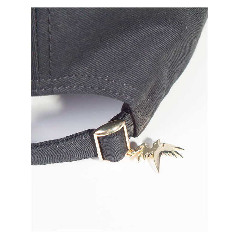 Como en todas nuestras gorras, no podría faltar los detalles que diferencian a nuestros artículos. Su cierre tiene un abalorio de un cuervo que cuelga de la hebilla haciendo homenaje a la mascota de Maléfica.