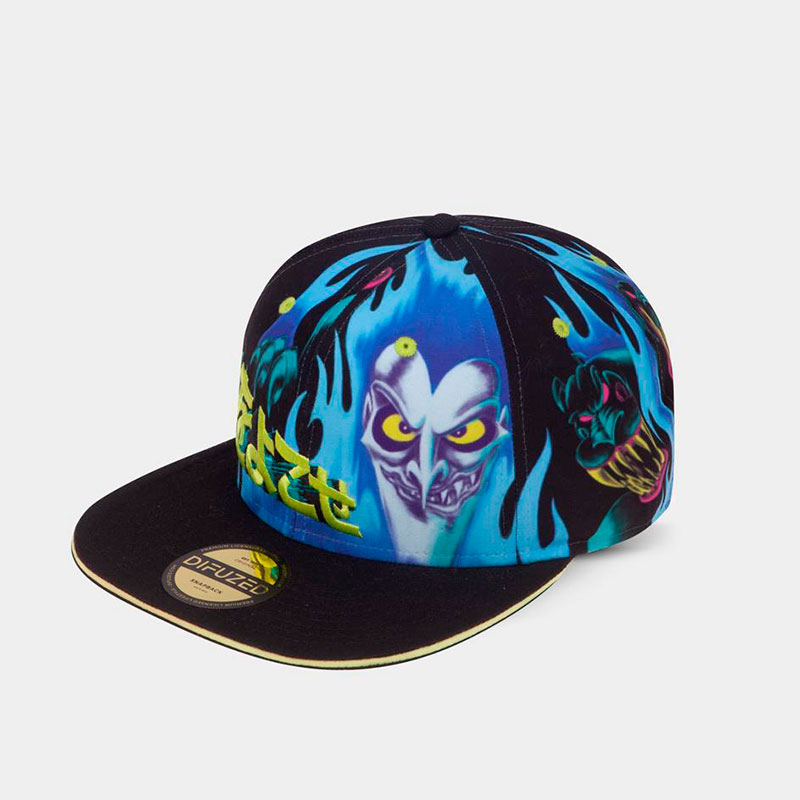 Original gorra tipo béisbol con visera plana para adultos, que hace homenaje a Hades, el villano de la película Hércules de la factoría Disney. Fabricada con licencia oficial con alta calidad tanto en sus materiales como en su diseño.