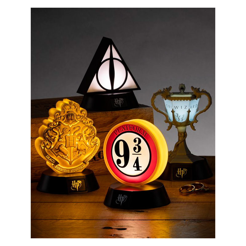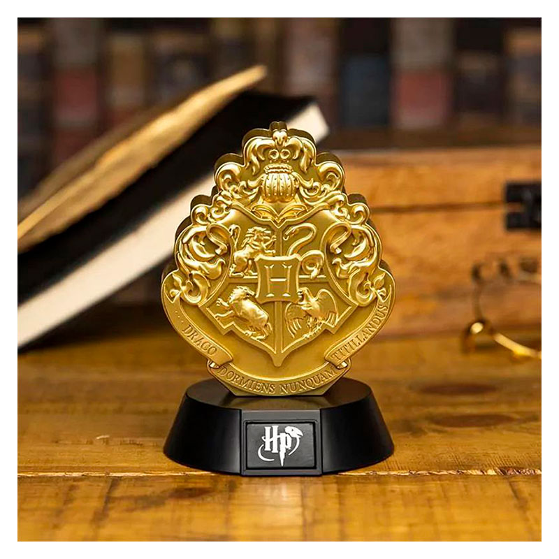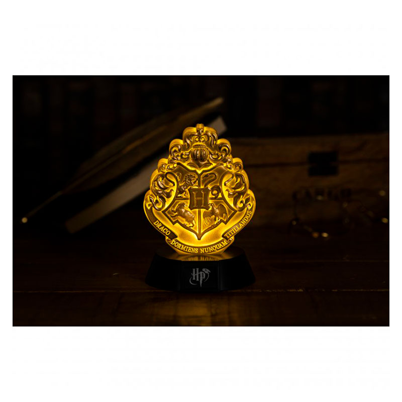 Pequeña lámpara Icon o lámpara quitamiedos del escudo o emblema del Hogwarst, el mágico colegio de la película Harry Potter.
