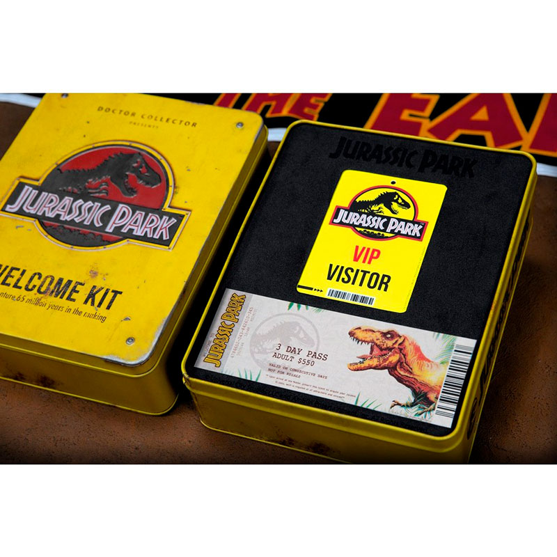 Se trata de un set de bienvenida a Jurassic Park, compuesto por varios objetos que harán las delicias de cualquier coleccionista y amante de Jurassic Park.