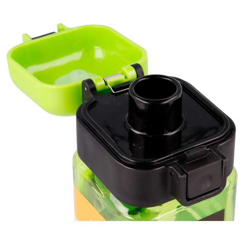 Original botella infantil cuadra, diseñada con los personajes del videojuego Minecraft. Está fabricada en plástico con una capacidad de 550ml y cuenta con un cierre de seguridad que se acciona para evitar fugas y una boquilla de succión que les permitirá beber con toda comodidad, sin riego a derrames.
