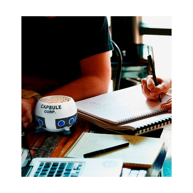 Una taza decorativa fabricada en cerámica de alta calidad, con el diseño increíble de la Capsule Corp de la serie manga Dragon Ball. No es solo una taza, es también un objeto decorativo, casi una pequeña escultura para coleccionistas. Mira en nuestra galería para ver todas las imágenes y sus detalles. Además, cuenta con una tapa incorporada para que no se enfrié el té, el café o lo que vayas a beber.