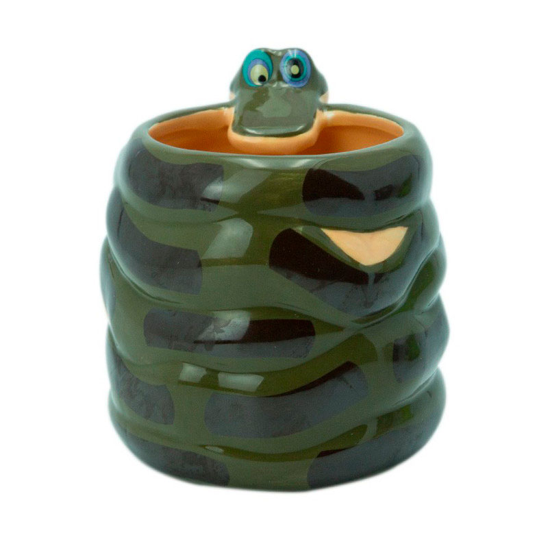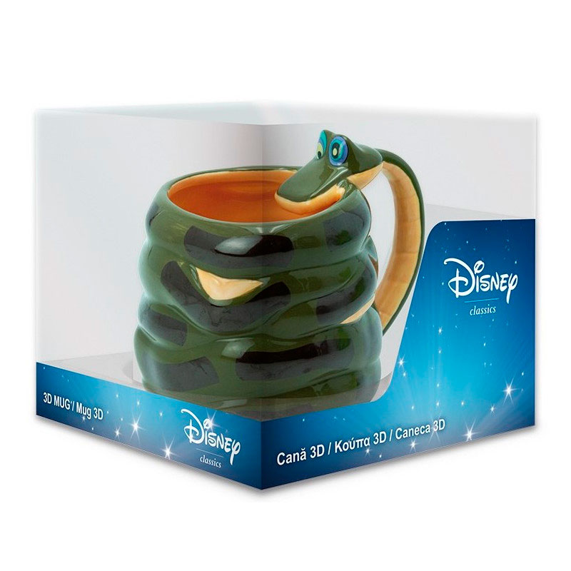 Alucinante y divertida taza decorativa 3D, con licencia oficial de Disney de Ka, la serpiente pitón de la película El Libro d la Selva de la factoría Disney. Fabricada en cerámica de alta calidad y con 450 ml de capacidad. Una espectacular taza, tanto por la calidad de su materia y pinturas como por los detalles pintados a mano de su acabado.
