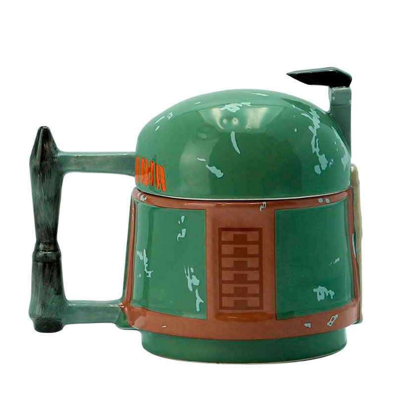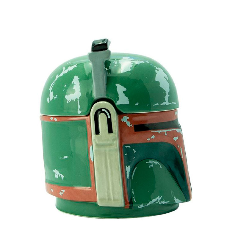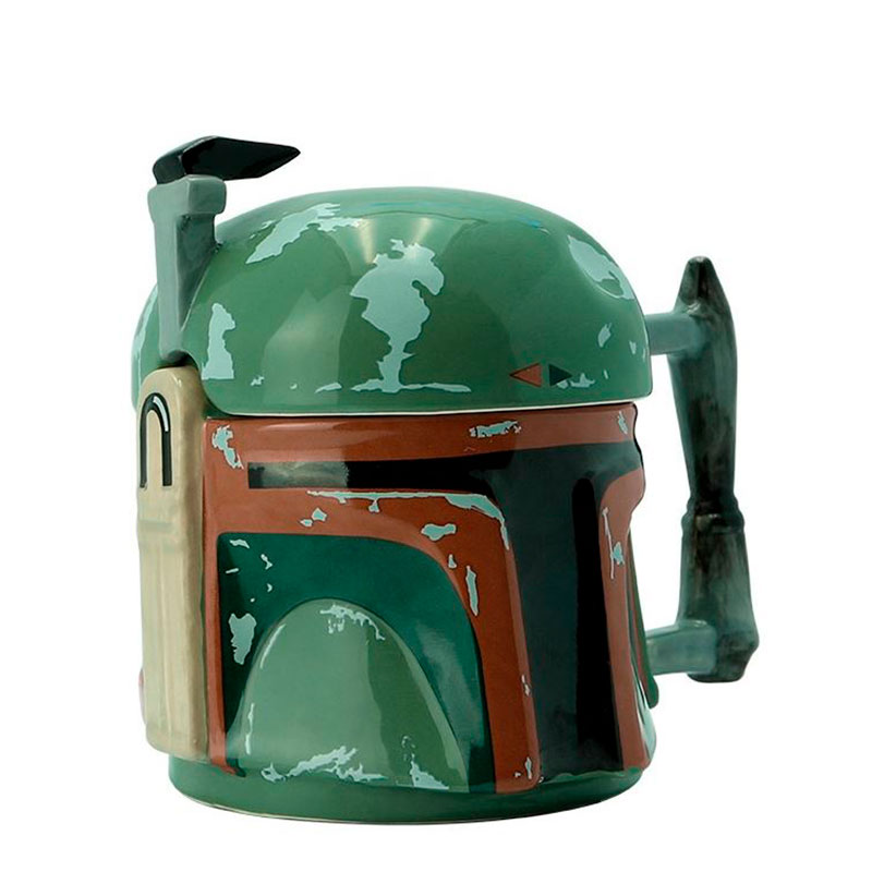 Una taza decorativa con el diseño increíble y totalmente fiel al casco de Boba Fett, el caza recompensas Mandaloriano considerado el mejor mercedario de la Galaxia. No es solo una taza, es también un objeto decorativo, casi una pequeña escultura de The Mandalorian. Mira en nuestra galería para ver todas las imágenes y sus detalles.
