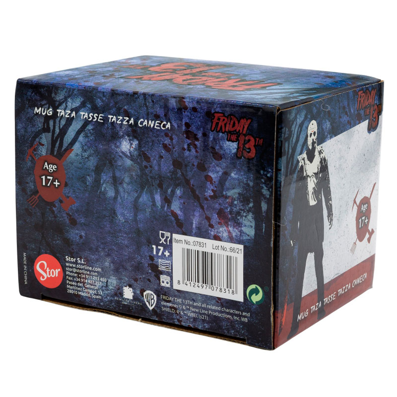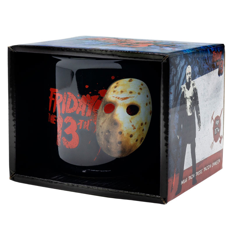 Impresionante taza decorativa inspirada en la película de Viernes 13. Fabricada en cerámica de alta calidad y con 400 ml de capacidad. Una estpenda taza, tanto por la calidad de su material y pinturas como por los detalles de su acabado.
