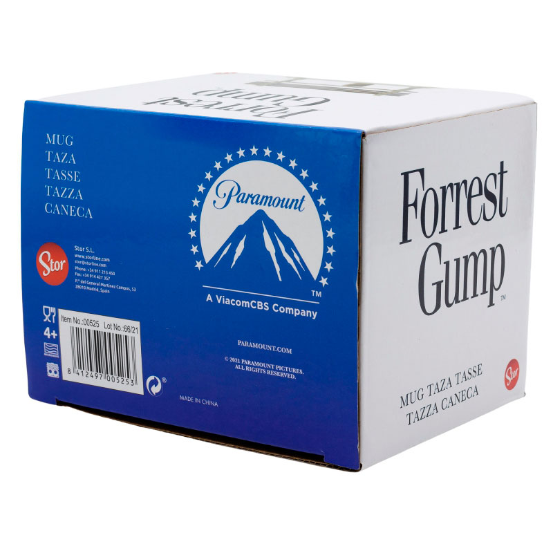 Elegante taza decorativa inspirada en la película Forrest Gump. Fabricada en cerámica de alta calidad y con 400 ml de capacidad. Una espectacular taza tanto por la calidad de su material y pinturas como por los detalles de su acabado.